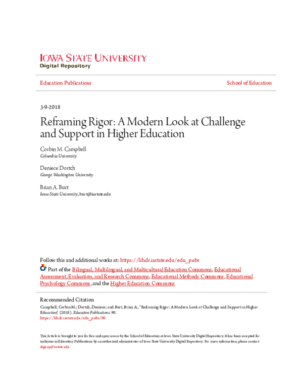 (PDF) Reframing Rigor: A Modern Look at Challenge and Support in Higher