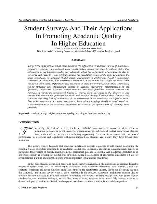 (PDF) Student Surveys And Their Applications In Promoting Academic