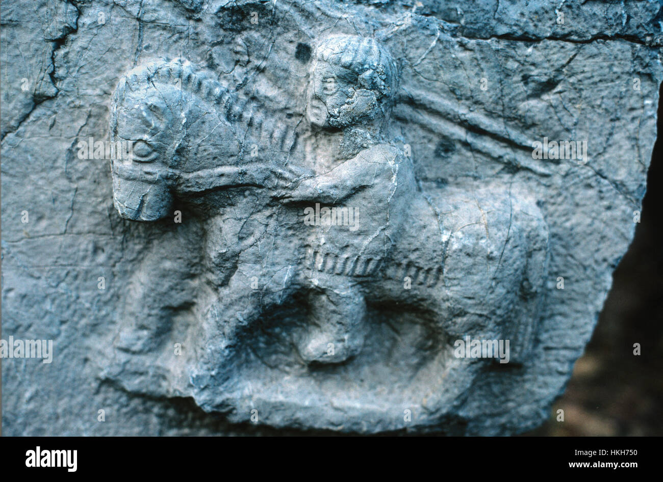 Hittite Carving of Soldier on Horseback or Cavalry with Shield and