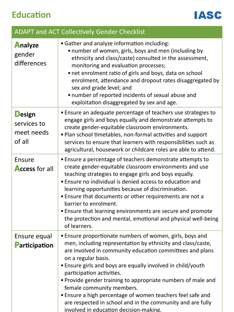 IASC Gender Education-Checklist | Gender | Ethnicity, Race & Gender