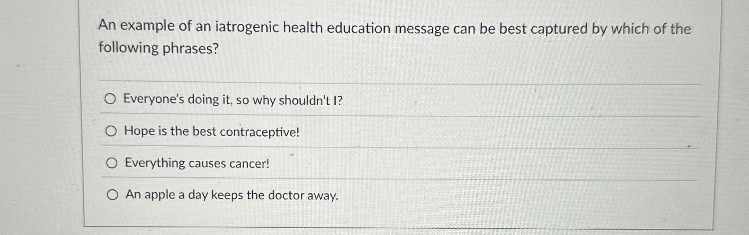 Solved An example of an iatrogenic health education message | Chegg.com