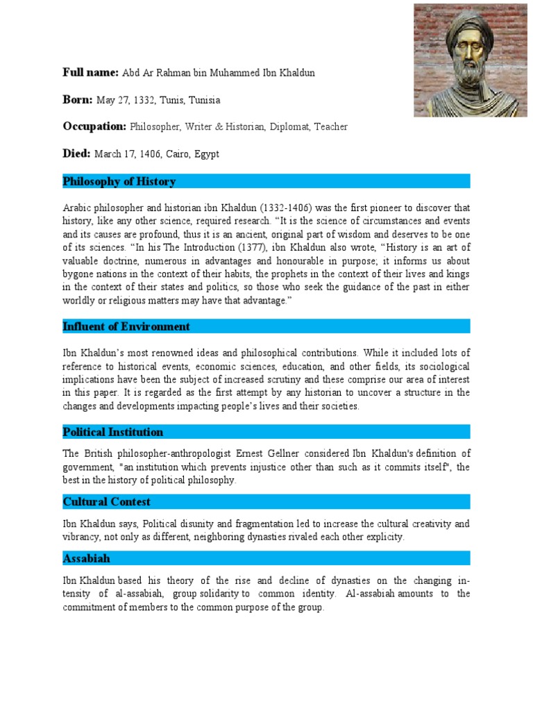 Full Name: Born: Occupation: Died: Philosophy of History: Abd Ar Rahman