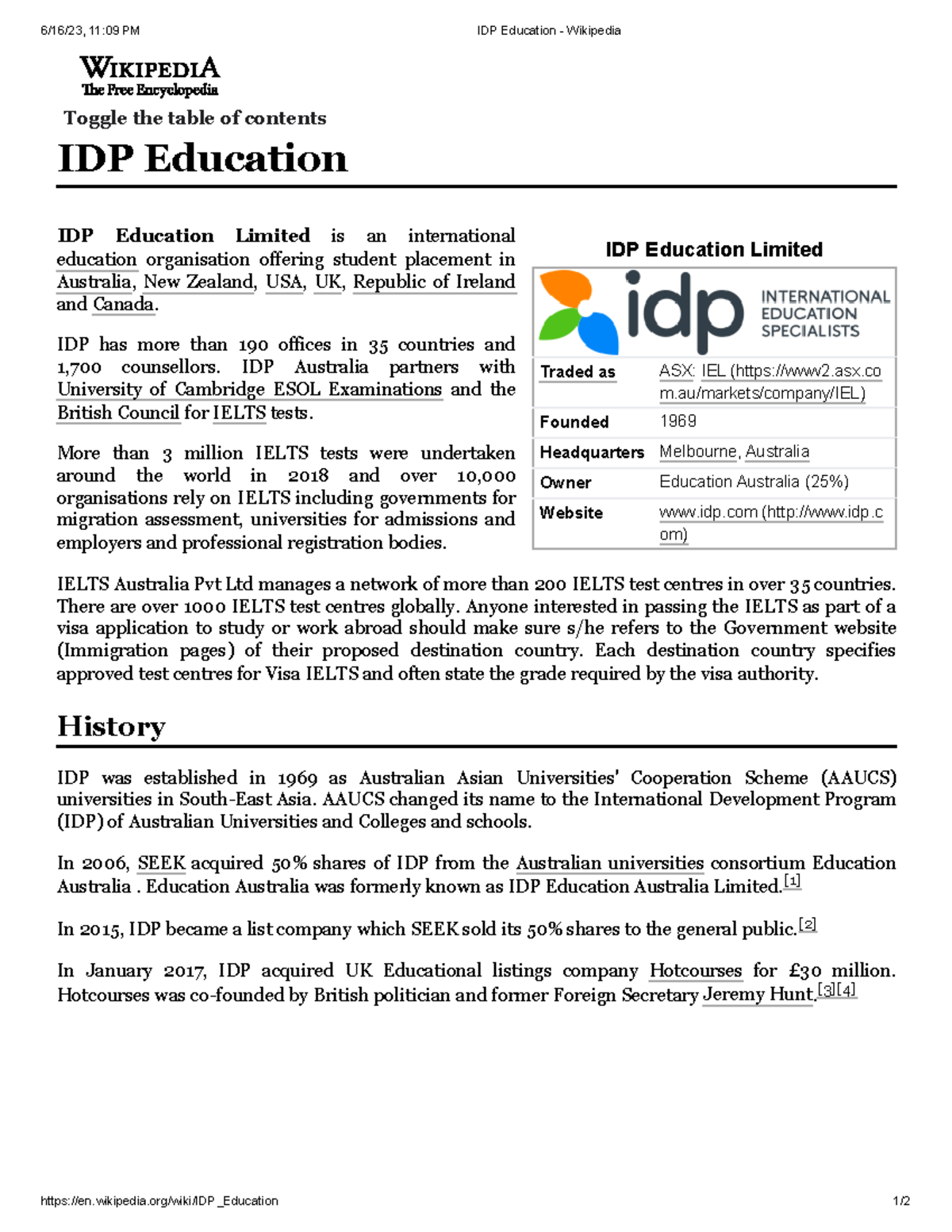IDP Education - wikipedia/wiki/IDP_Education 1/ IDP Education Limited