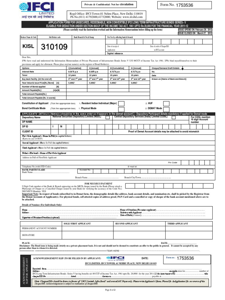 Ifci infra bond 2012 application form