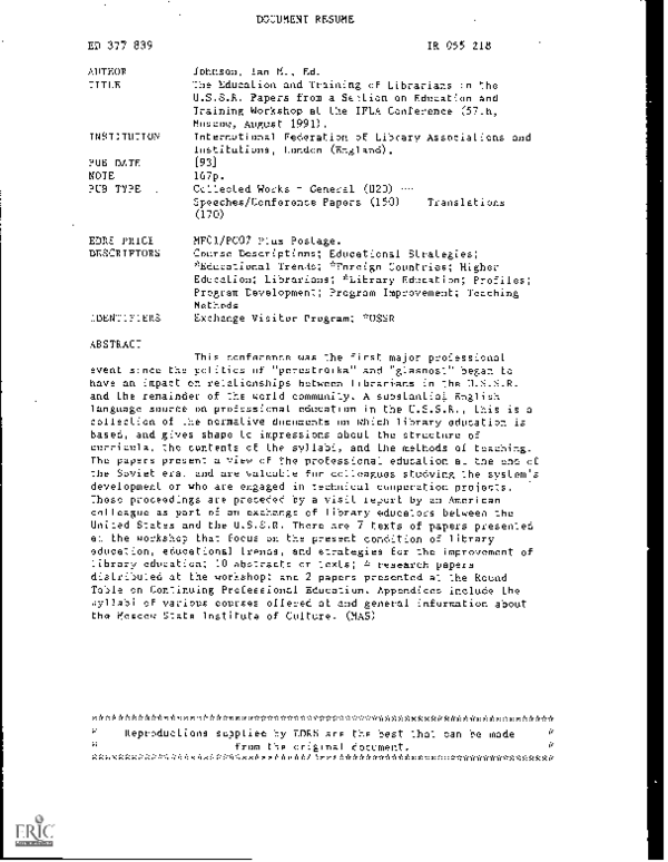 (PDF) The Education and Training of Librarians in the U.S.S.R. Papers