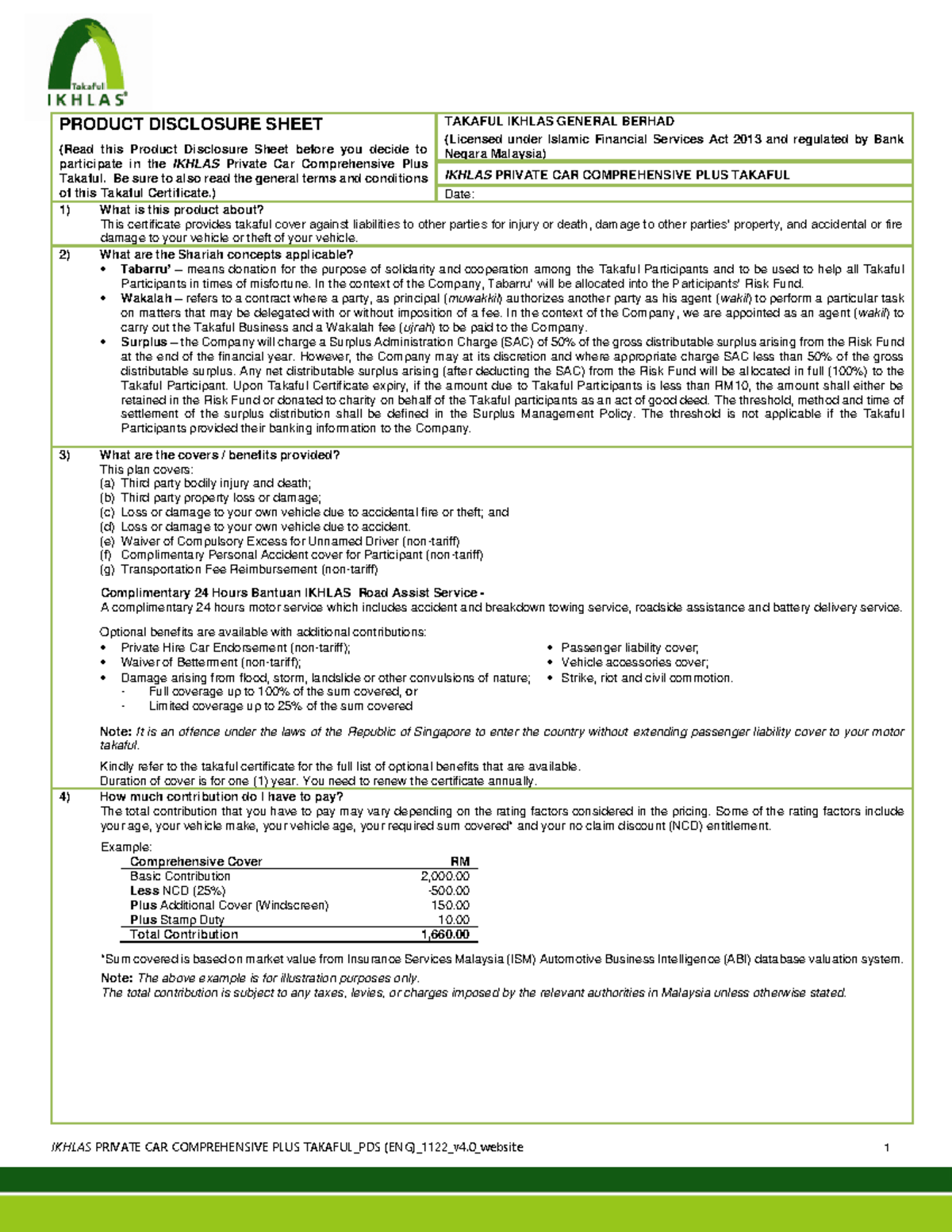 Ikhlas Takaful example - IKHLAS PRIVATE CAR COMPREHENSIVE PLUS TAKAFUL