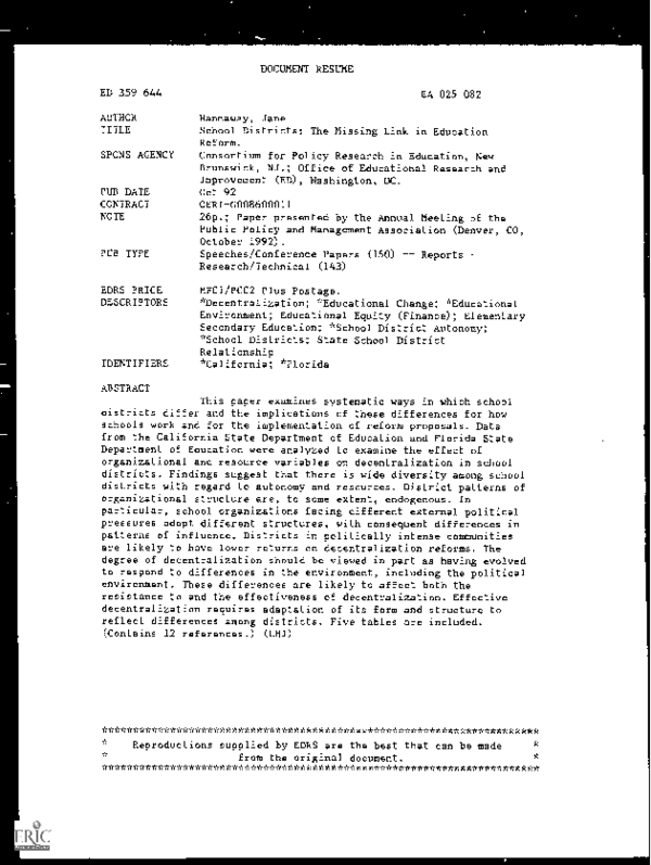 (PDF) School Districts: The Missing Link in Education Reform | Jane