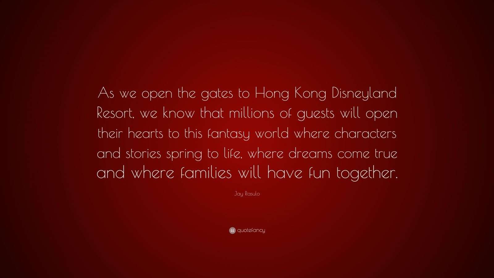Jay Rasulo Quote: “As we open the gates to Hong Kong Disneyland Resort