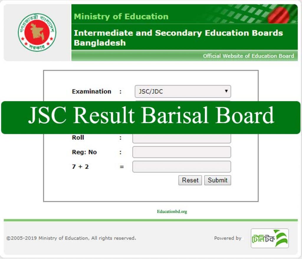 JSC Result 2019 Barisal Education Board by Online & SMS - JSC Result 2019