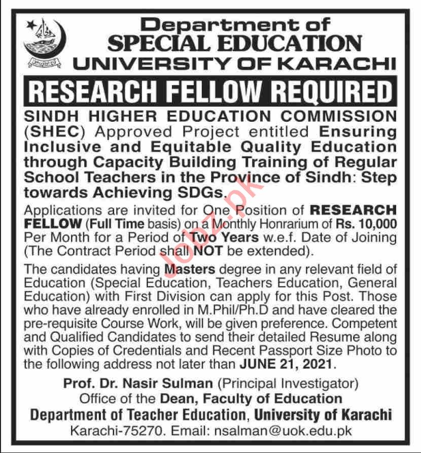 Department of Teacher Education University of Karachi Jobs 2024 Job