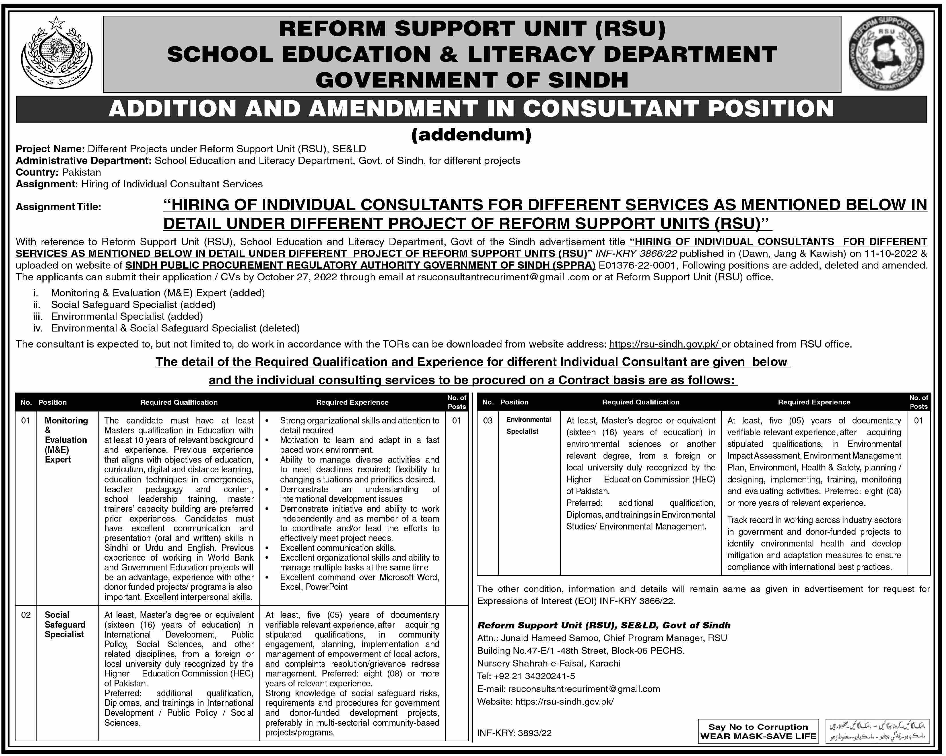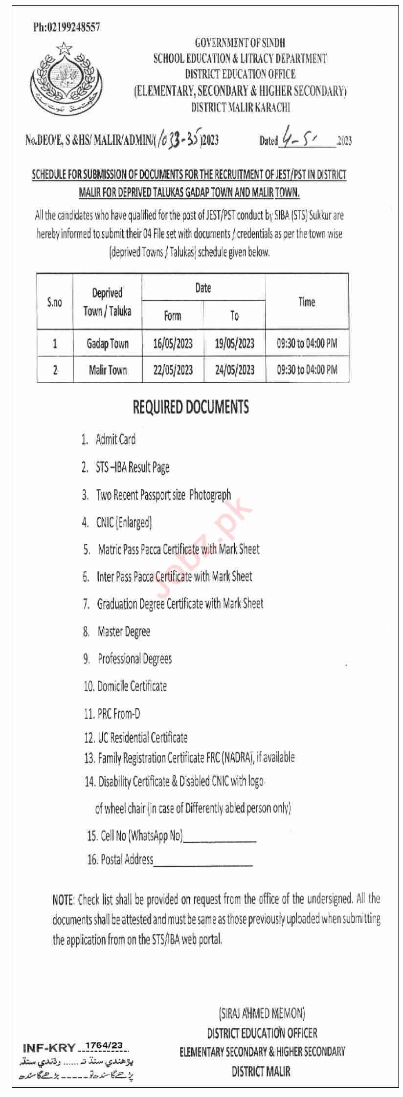 School Education Department Karachi Jobs 2023 2024 Job Advertisement