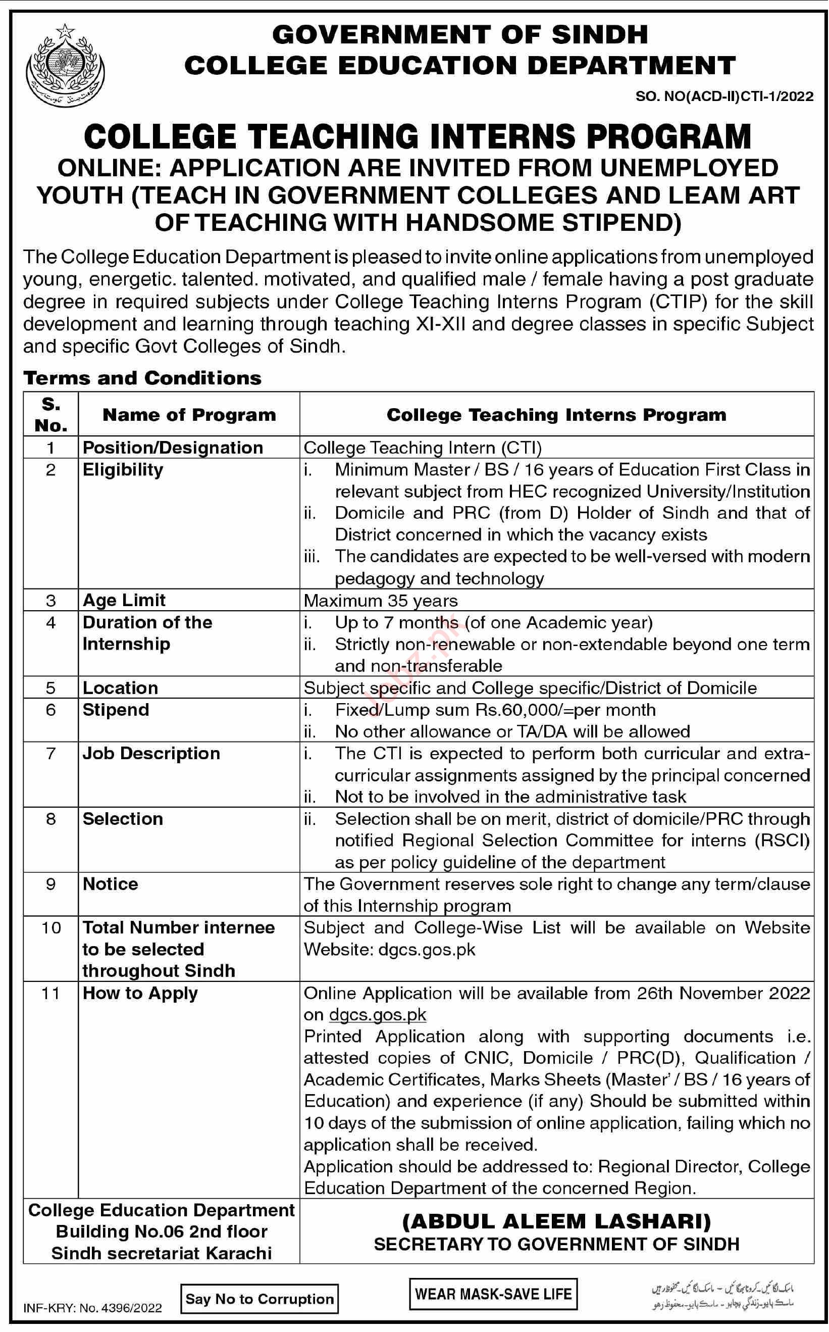 College Education Department Karachi Job 2022 2025 Job Advertisement