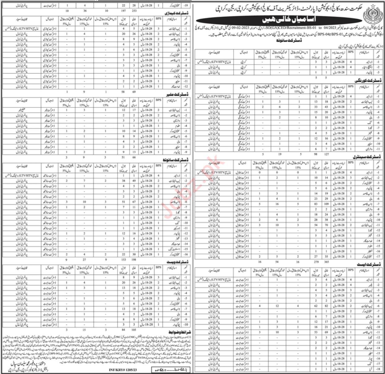 College Education Department Karachi Jobs 2023 2025 Job Advertisement