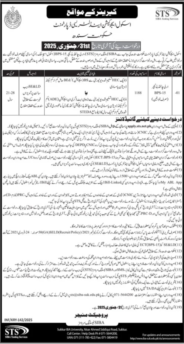 School Education & Literacy Department Sindh Karachi Jobs 2025 Job