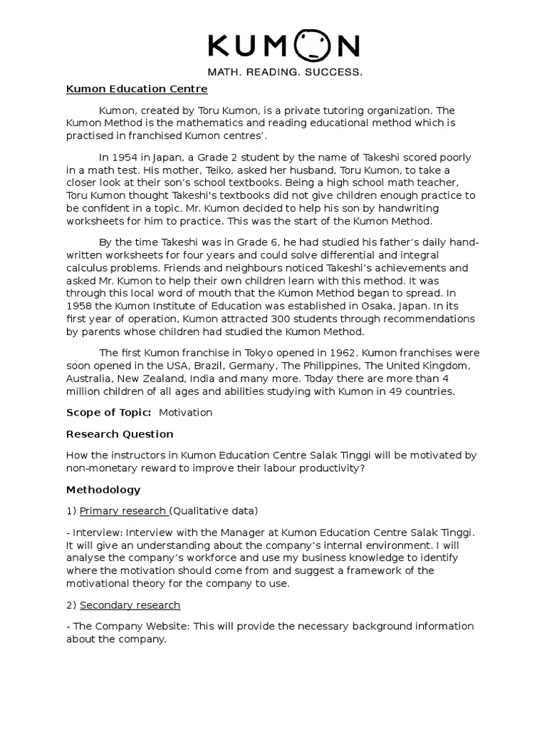 Kumon Education Centre - Docx Pre Proposal | PDF | Cognition | Learning
