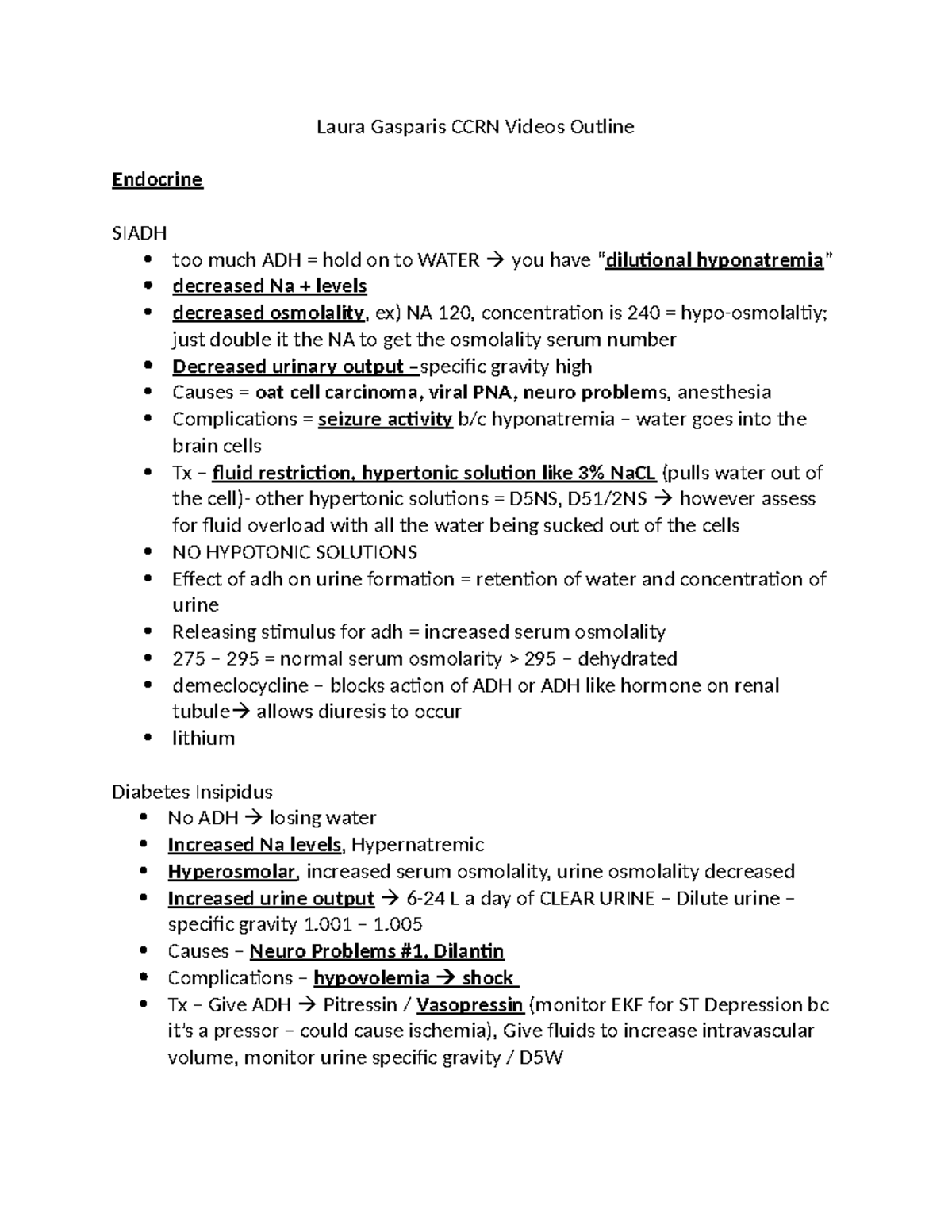 Laura Gasparis CCRN Review - CCRN Laura Gasparis DISK 1 Endocrine SIADH