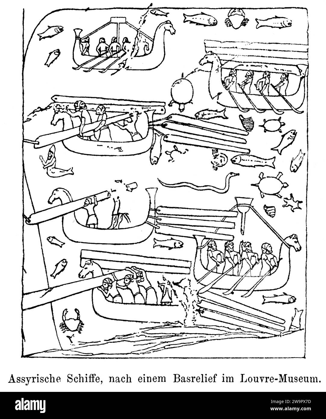 Assyrian ship, Assyria, transport, wood, tree trunks, slaves, rowing