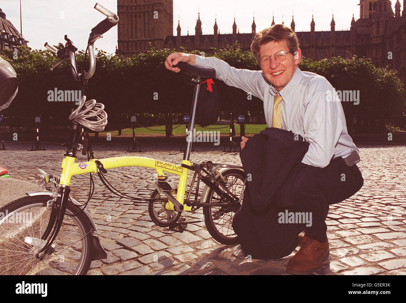 Liberal Democrat Transport Spokesman, Don Foster, poses with a bicycle