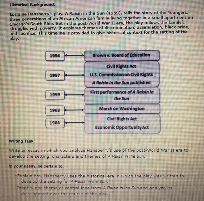 Solved Historical Background: Lorraine Hansberry's play, A | Chegg.com