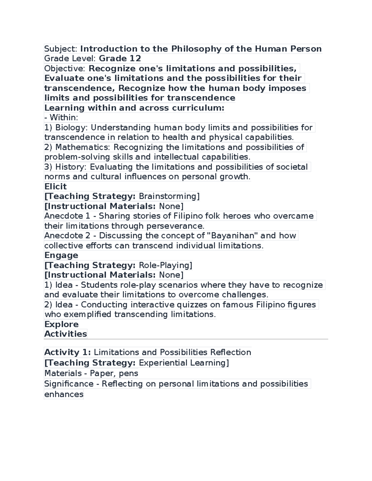 Philo - Subject: Introduction to the Philosophy of the Human Person