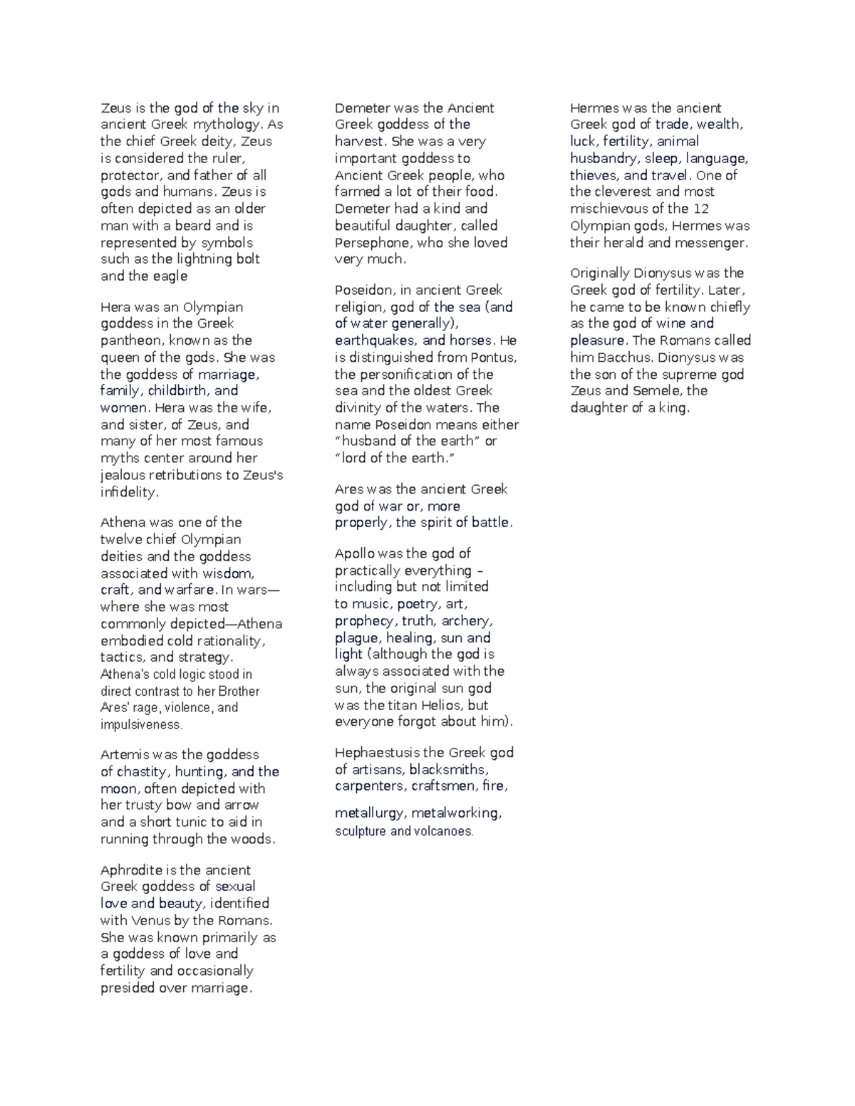 12 olympians - Zeus is the god of the sky in ancient Greek mythology