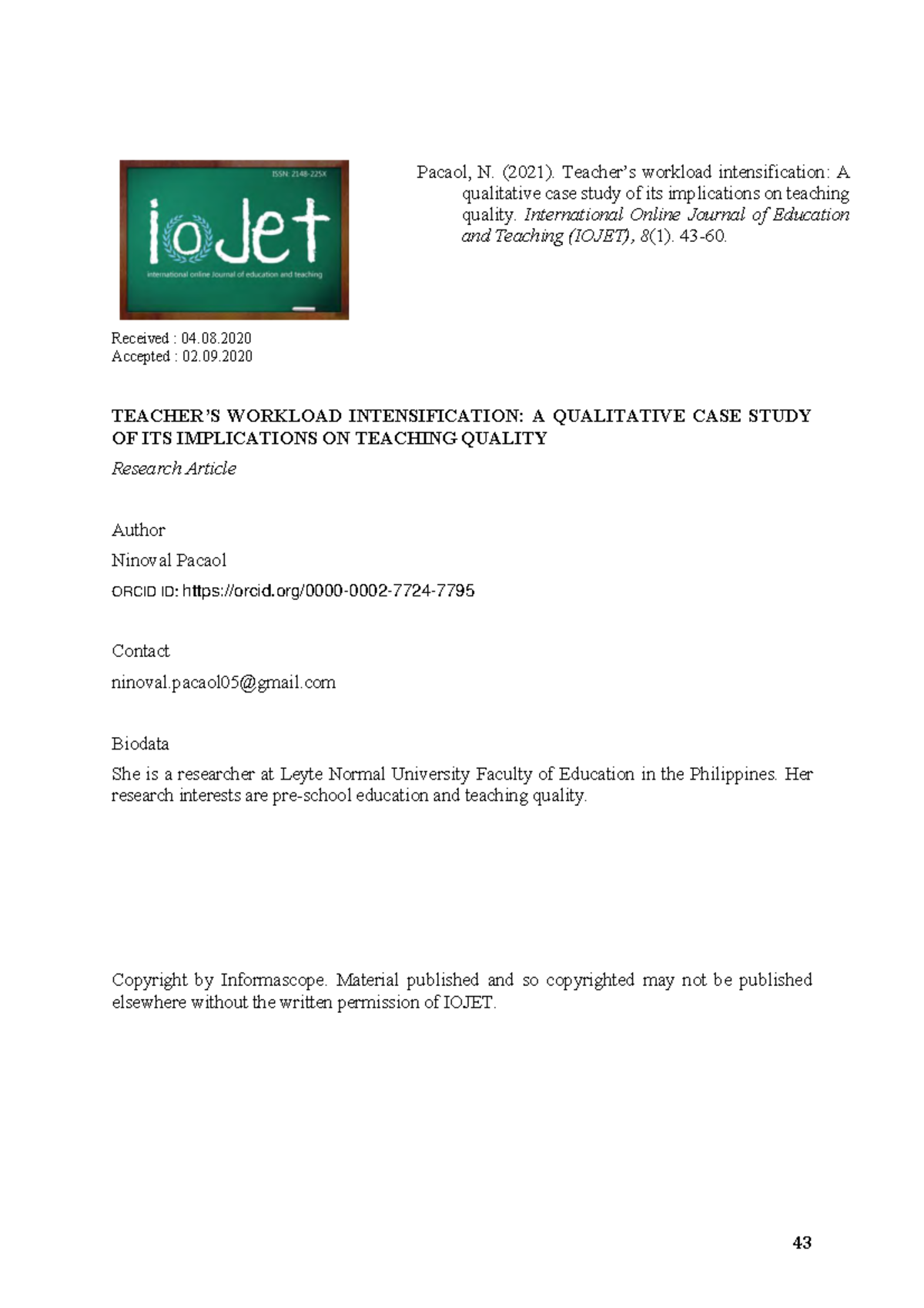 Teachers Workload Intensificationa Qualitative CASE Study - Pacaol, N
