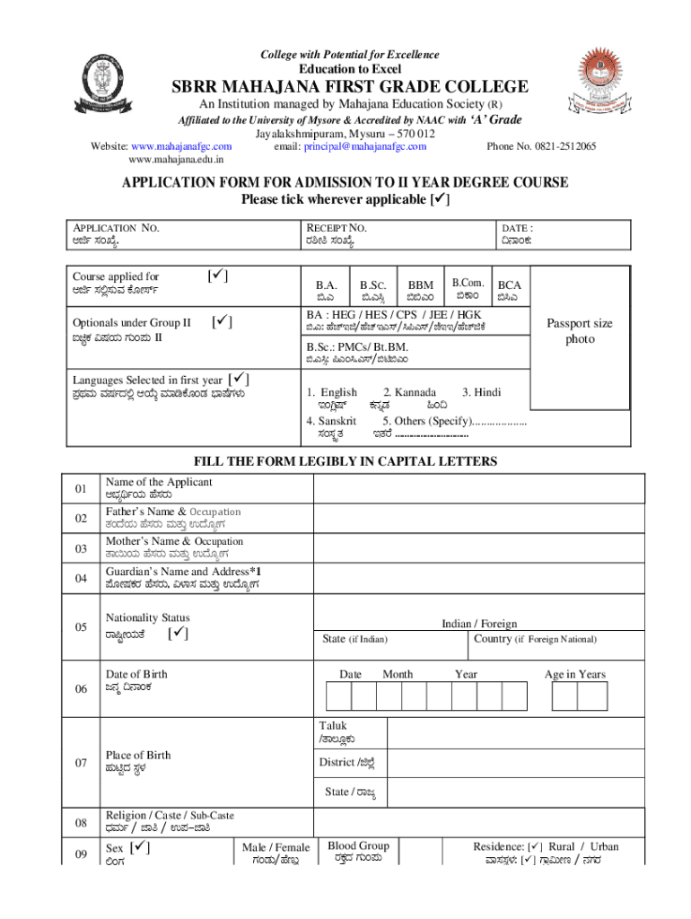 Fillable Online Mahajana First Grade College - Mahajana Education