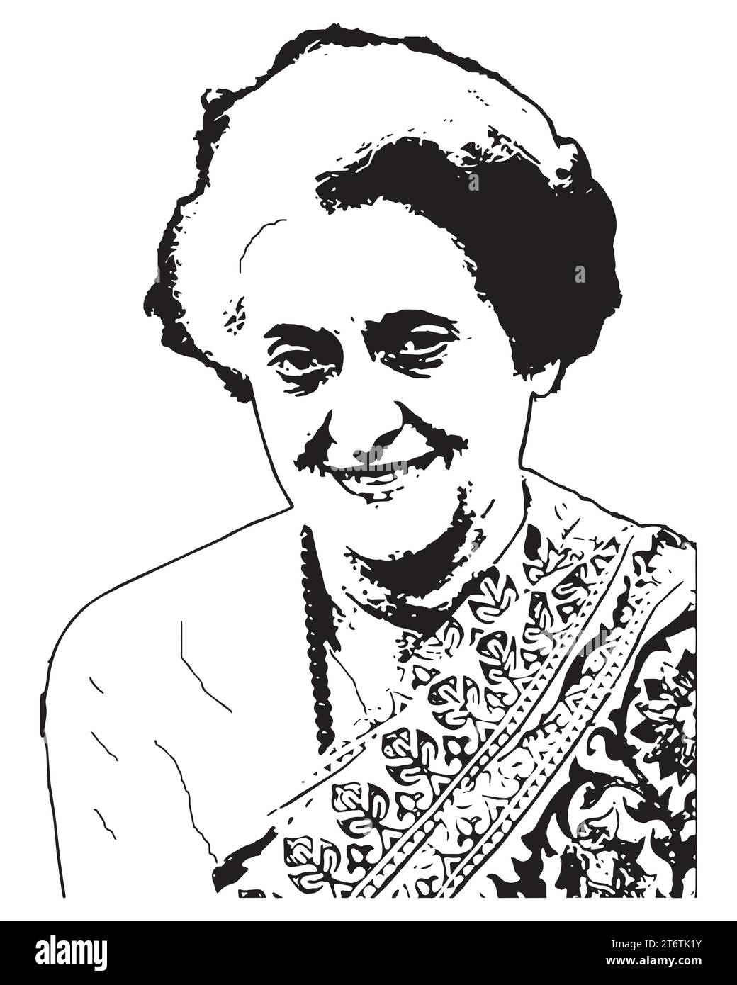 Indira Gandhi Indian politician Vector Illustration Abstract Black and