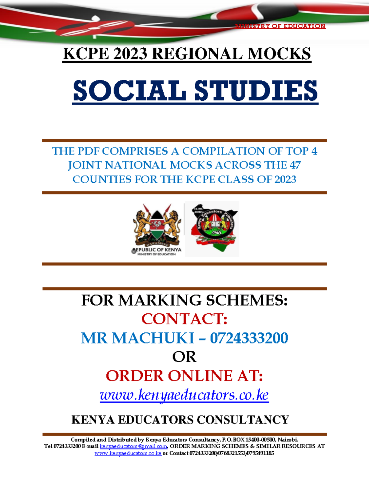 SST KCPE 2023 Regional Mocks - MINISTRY OF EDUCATION ####### Compiled