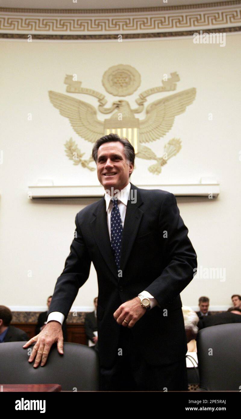 Massachusetts Gov. Mitt Romney arrives to testify at the House