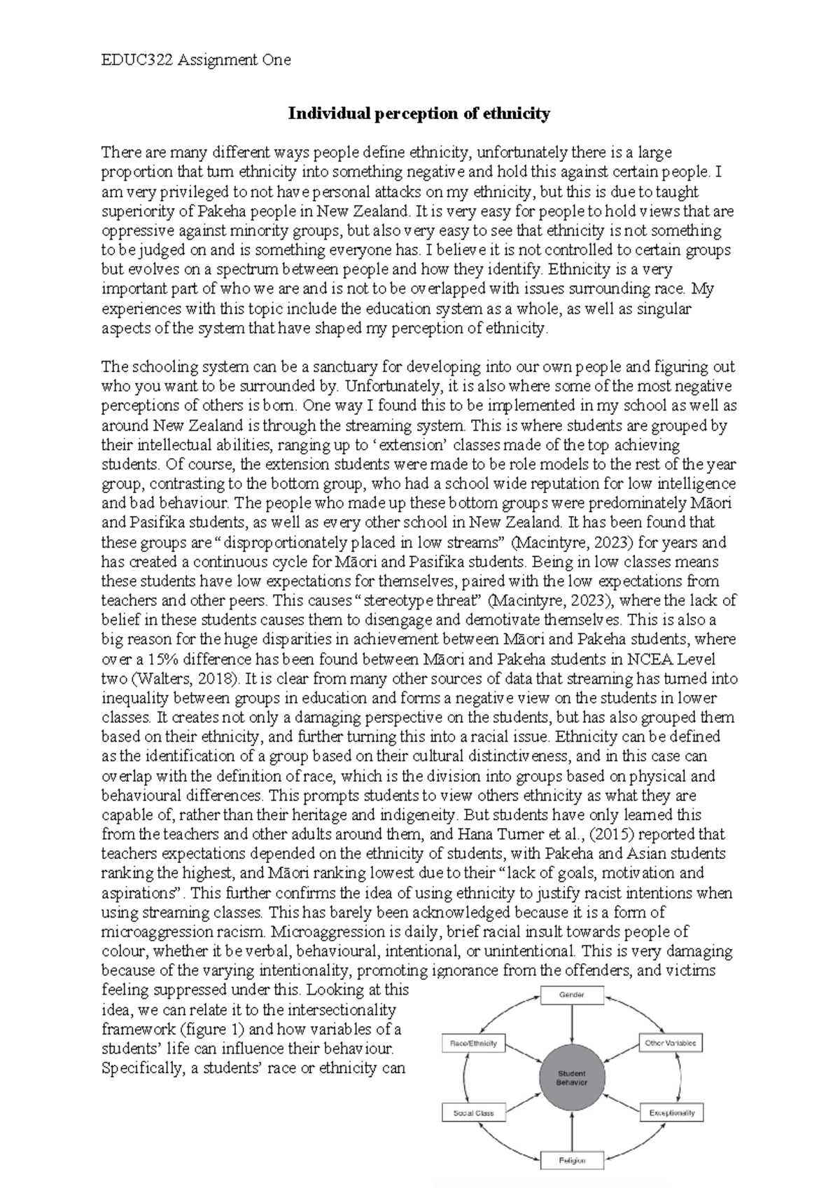 EDUC322 Assignment one - Individual perception of ethnicity There are
