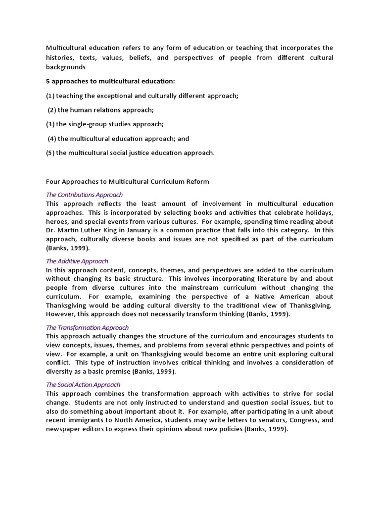 5 Approaches To Multicultural Education:: The Contributions Approach