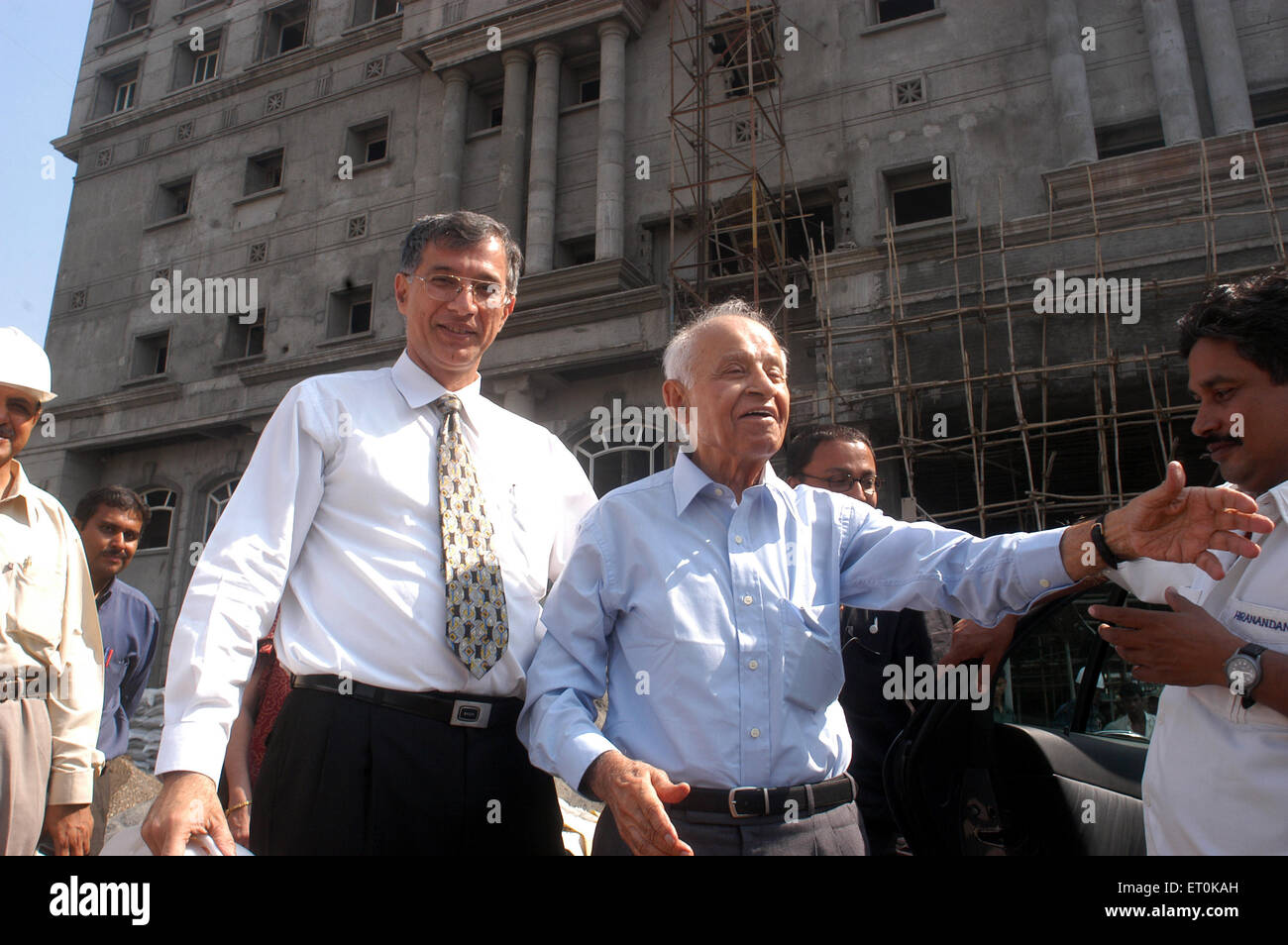 Niranjan Hiranandani with father Dr L H Hiranandani at site of hospital