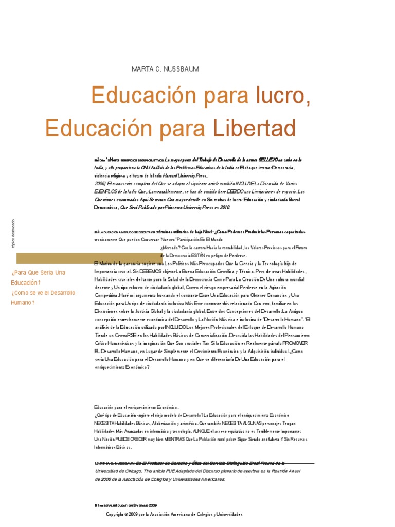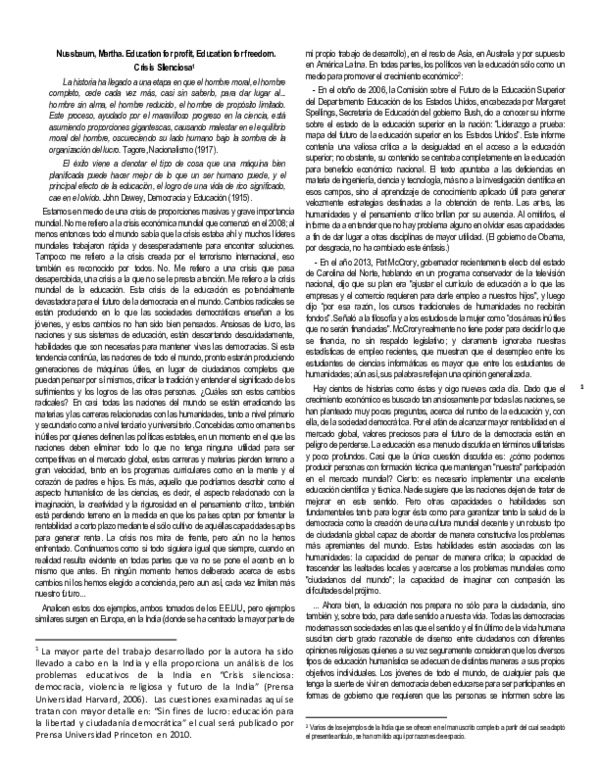 (PDF) Nussbaum, Martha. Education for profit, Education for freedom