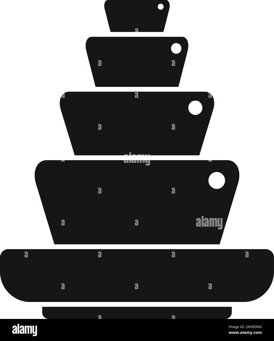 Black silhouette of an outdoor stone water feature with cascading tiers