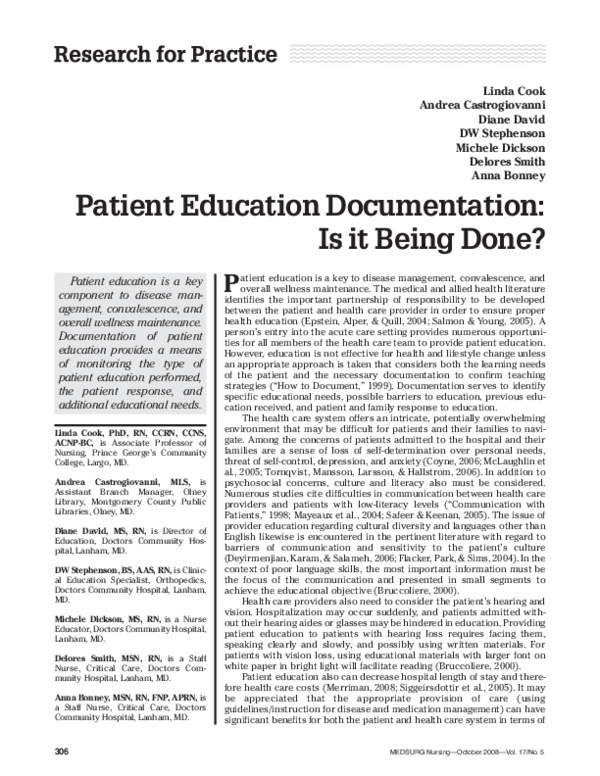 (PDF) Patient education documentation: is it being done?