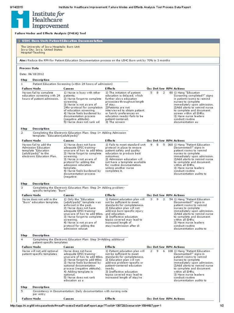 (PDF) contoh FMEA UIHC Burn Unit Patient Education Documentation
