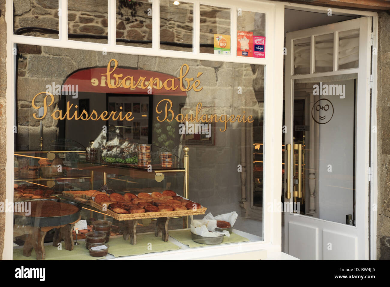 A French Patisserie shop window in the town of Dinan, Brittany, France