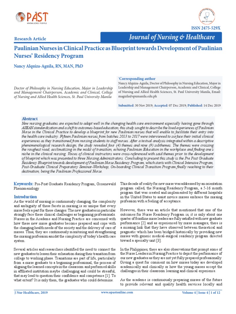 Paulinian Nurses in Clinical Practice As Blueprint Towards Development