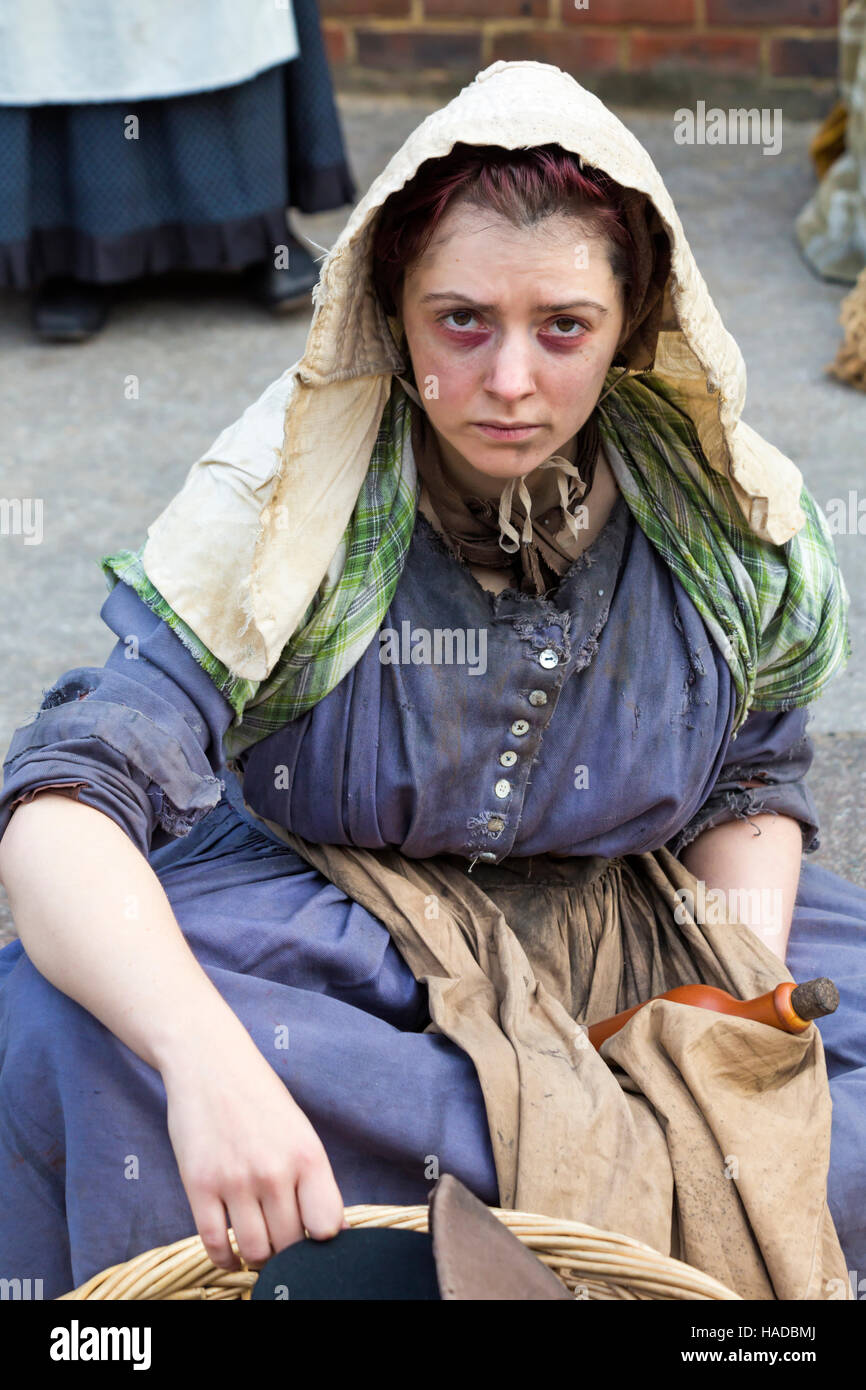 Pauper on street at Victorian Festival of Christmas at Portsmouth