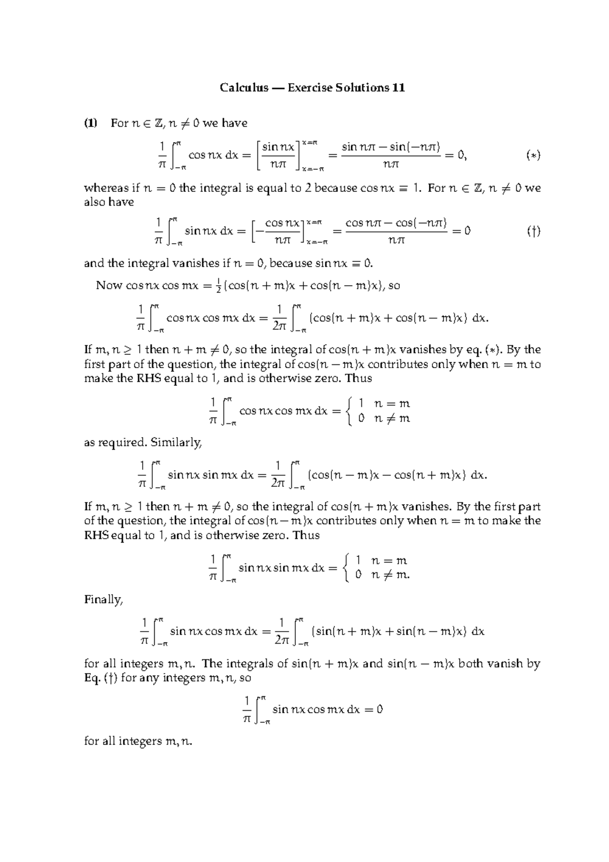 Calculus assessment 11 solutions - Calculus — Exercise Solutions 11 (1