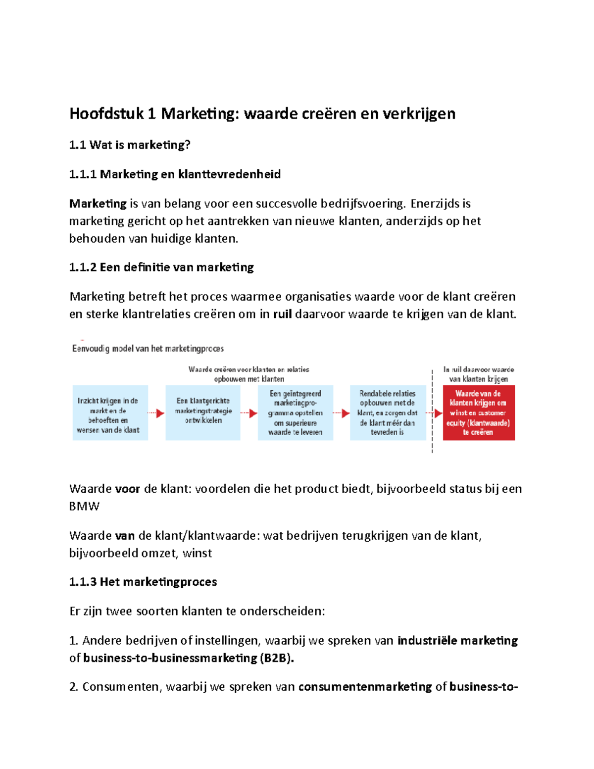 Samenvatting principes van de marketing - Hoofdstuk 1 Marketing: waarde