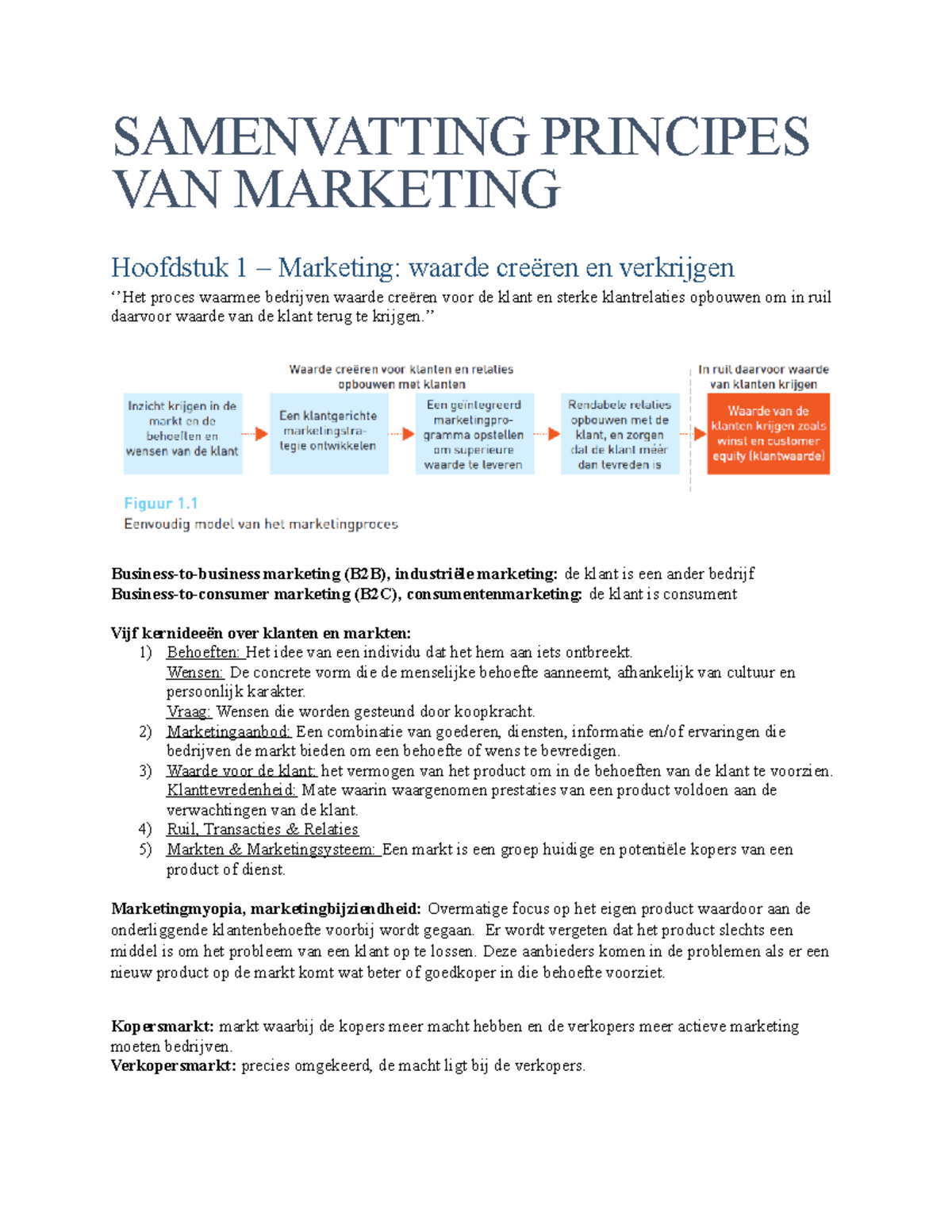 Samenvatting Principes van Marketing H1-7 - SAMENVATTING PRINCIPES VAN