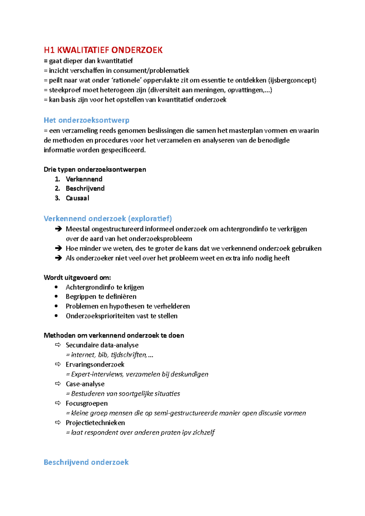 Samenvatting Principes van Marktonderzoek - H1-4 - H1 KWALITATIEF