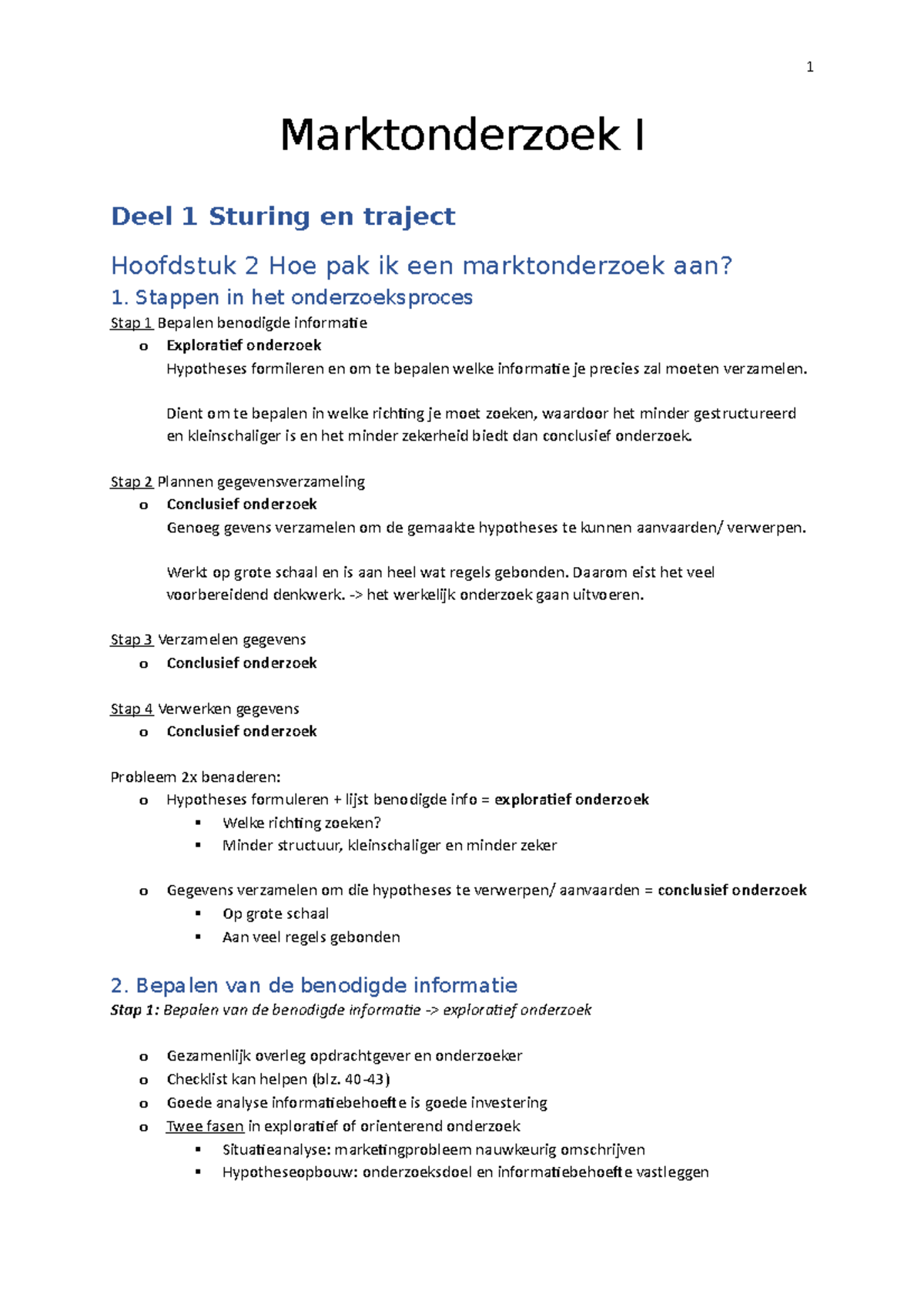 Marktonderzoek I - Marktonderzoek I Deel 1 Sturing en traject Hoofdstuk