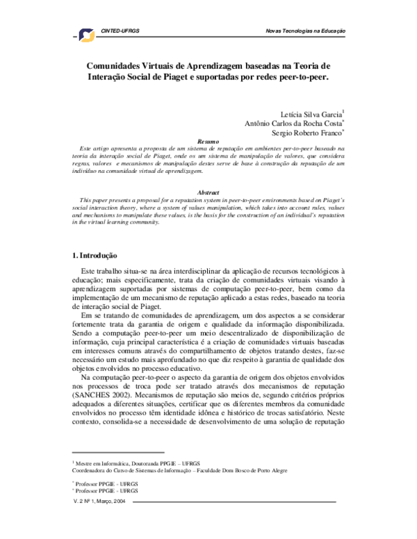 (PDF) Comunidades Virtuais de Aprendizagem baseadas na Teoria de