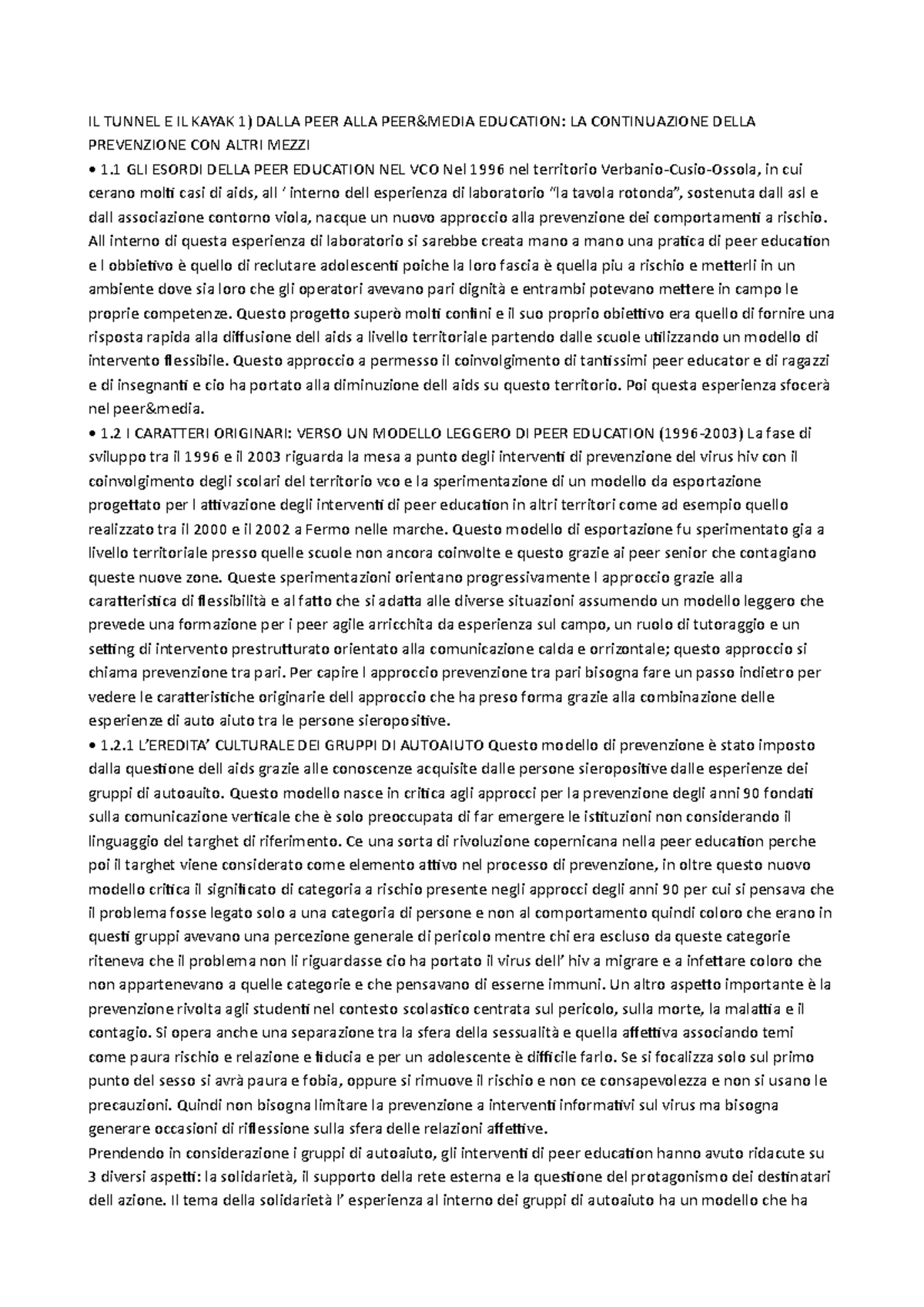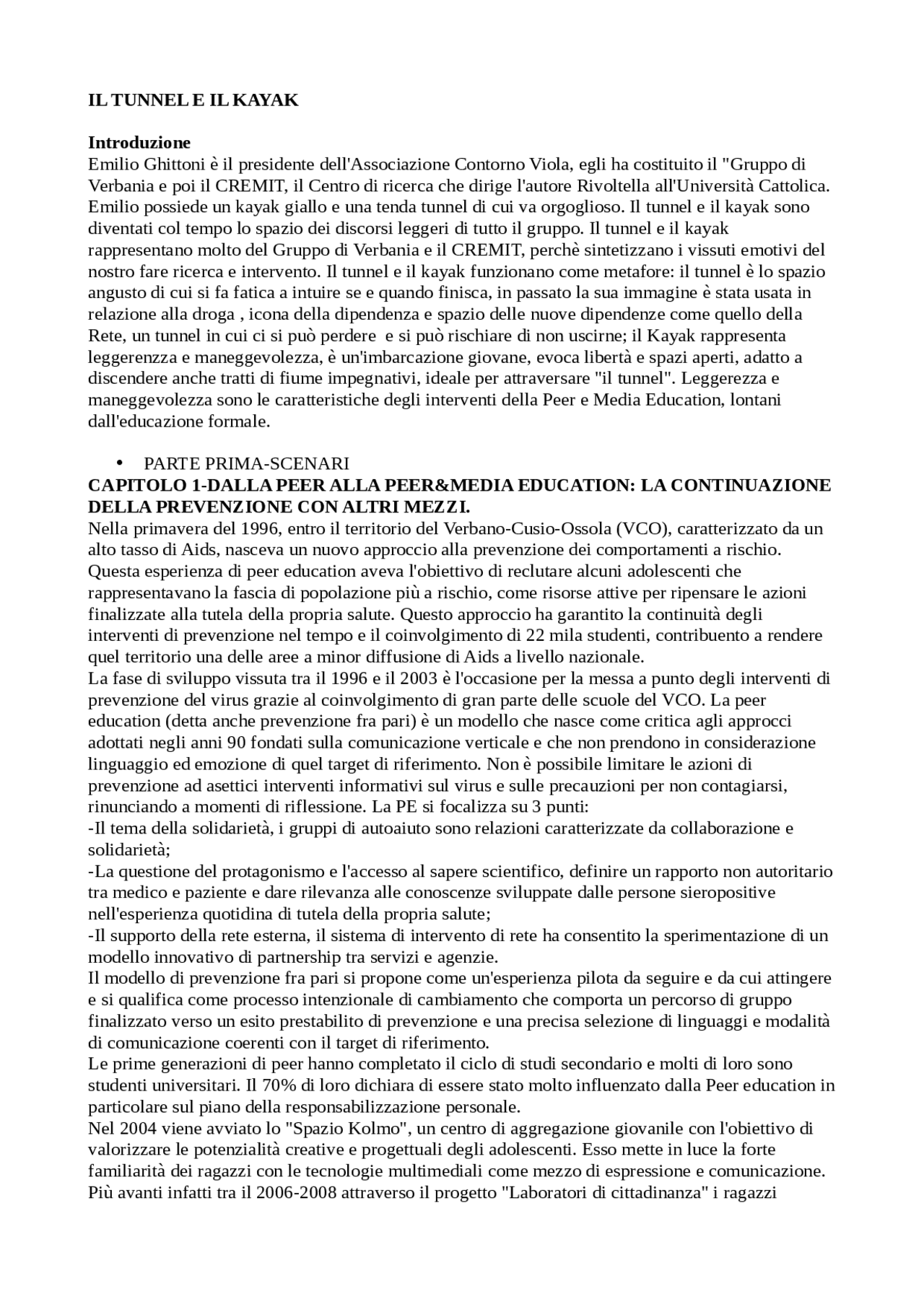 IL Tunnel E IL Kayak 1 - teoria e metodo della peer e media education