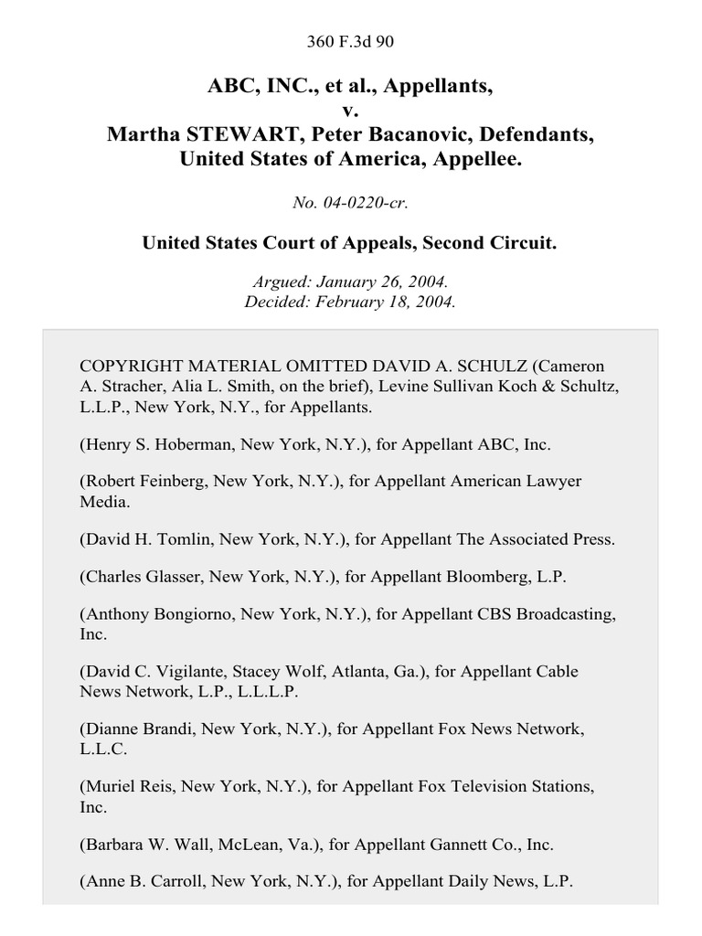 Abc, Inc. v. Martha Stewart, Peter Bacanovic, United States of America
