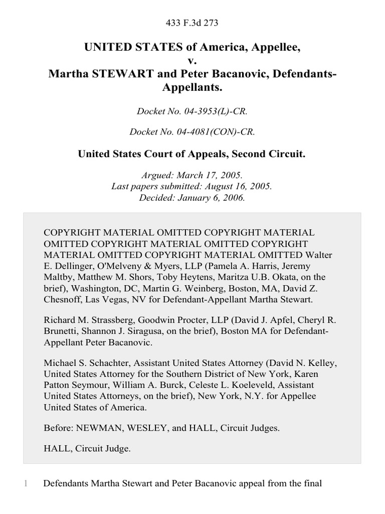 United States v. Martha Stewart and Peter Bacanovic, 433 F.3d 273, 2d