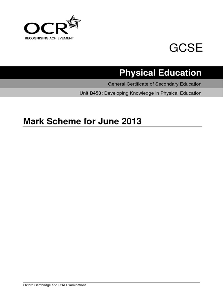 Mark Scheme Unit b453 Developing Knowledge in Physical Education June